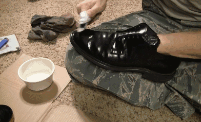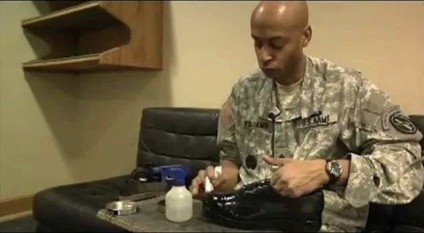 美国士兵需要用手擦拭皮鞋,在擦皮鞋时甚至还有一套具体要求,必须把皮鞋擦的和玻璃一样干净明亮,不能有一丝尘垢。擦皮鞋至少要擦够20分钟,而且要擦出人影儿的那种。美国军队服役期间,擦皮鞋的时间比解放军叠豆腐块的时间可长多了。