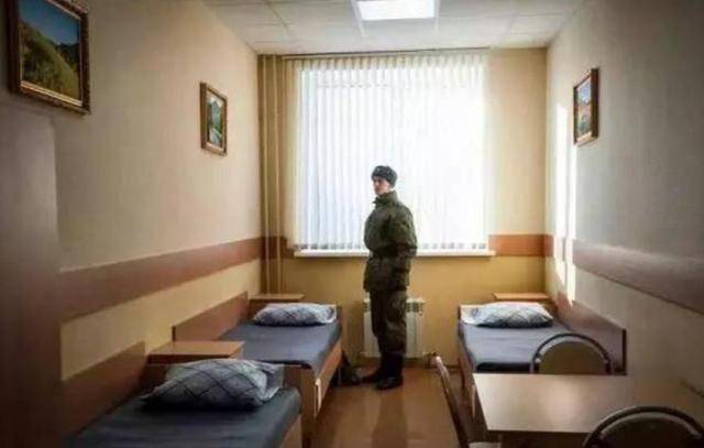 俄军整理的宿舍看上去更加宽敞整洁,床上物品的摆放很少、有秩序,俄军没有像美国军人的衣物一样摆放在床边,除此之外他们必须要时刻保持地面干净。
